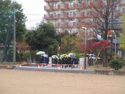 11月8日(火)朝の登校 公開日 2022/11/08 更新日 2022/11/08 学校だより 11月8日(火) 少し肌寒い小雨の朝となりました。マフラーや防寒具姿の生徒も多くなりました。天候に合わせた服装で健康管理お願いします。また、寒さや雨のため、いつもより登校が遅れがちのようです。寒いですが早めの登校できるようお願いします。テスト勉強で遅かったのかもしれませんが。