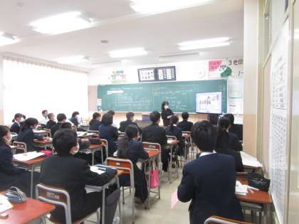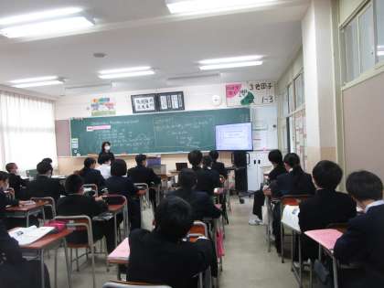 1年3組の英語は、Which(どちら)の用法を学習していました。映像を見ながら使い方を学習していました。