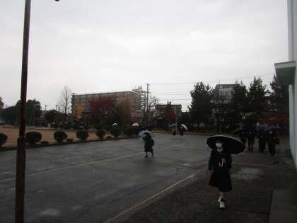 11月22日(火)の朝の登校の様子 公開日 2022/11/22 更新日 2022/11/22 学校だより 期末考査1日目、小雨の中の登校でした。ワークなどを手に持って勉強しながら登校している生徒もいました。
