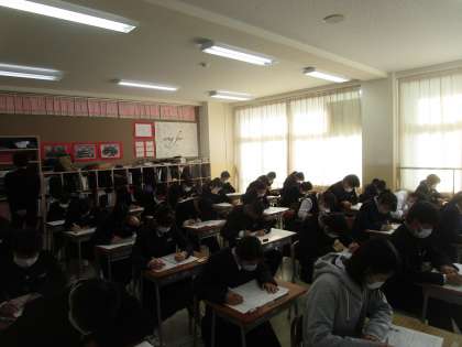 11月24日(木)期末考査2日目 祝日明けですが、期末考査2日目1限のテストの様子です。あと2日頑張れ