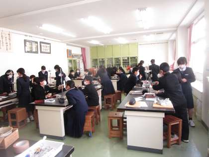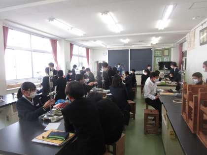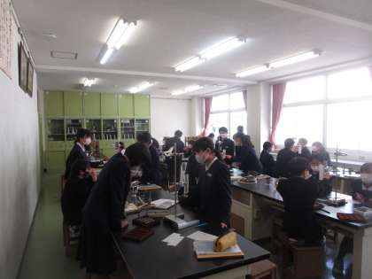1年2組の理科は、理科室でバネを使った実験をしました。グループごとに協力して楽しそう実験していました。