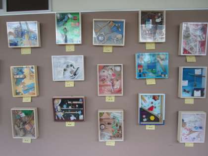3年美術作品 アッサンブラージュ 公開日 2022/11/24 更新日 2022/11/24 3学年 3年生美術の授業で制作したアッサンブラージュが出来上がったクラスから展示されています。箱の中にどんな世界があるかぜひご覧ください。