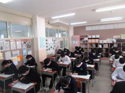 3年生の期末考査2限は国語のテストでした。最後の作文を一生懸命頑張って書いていました。