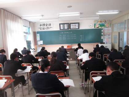 2年の期末考査の最後は数学でした。図形の問題に一生懸命取り組んでいました。