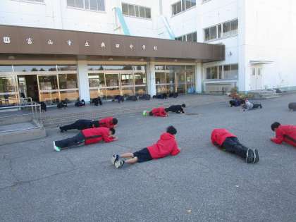休日の部活動 男女陸上競技部 公開日 2022/11/26 更新日 2022/11/26 部活動 11月26日(土)午前 男女陸上競技部が体幹トレーニングで全身をバランスよく鍛えていました。最高の天候で気持ちよさそうに練習していました。