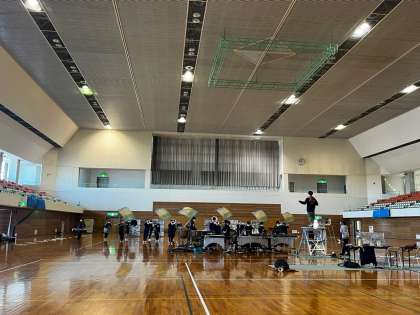 射水市のアルビス小杉総合体育センターで練習をしています。各パートの外部講師をお招きして、指導をいただいています。
