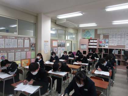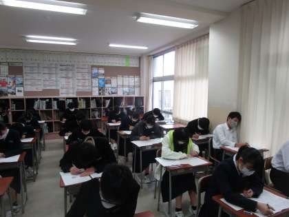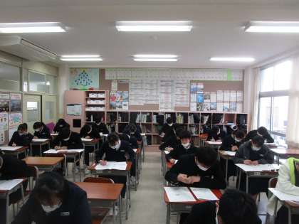 富山市学力調査が今日、明日と実施されます。1限は社会のテストでした。3年生は1週間ごとにテストがこの時期あります。大変ですが頑張りましょう。