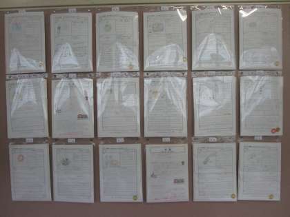 3学年 家庭科 公開日 2022/12/02 更新日 2022/12/02 3学年 3年生の教室前の廊下の掲示板に家庭科でまとめたおもちゃ計画書が掲示されました。休み時間にどんなおもちゃを友達が考えたか興味深く見ていました