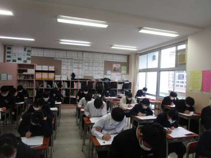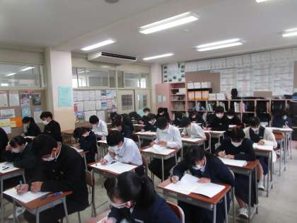 富山市学力調査2日目 2限数学 公開日 2022/12/02 更新日 2022/12/02 3学年 富山市学力調査2日目、2限数学のテストの様子です。また、来週にもテストがあります。また、少し休んで自分の進路に向けて頑張ってください。