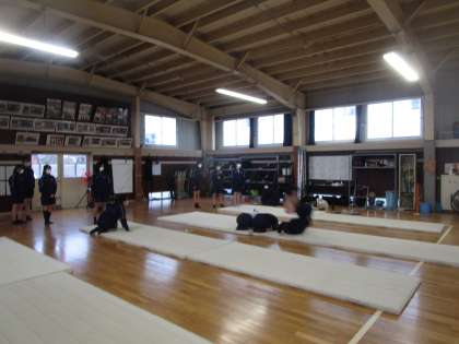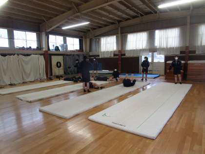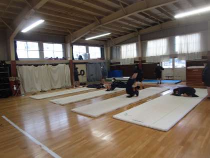2年生女子の保健体育はマット運動をしています。今日は前転系の技をクロムブックでこつや動画を見たり、自分の技を動画で撮影したりしてよりよい技になるよう頑張っています。
