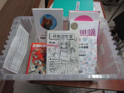 文化委員会 学級文庫 公開日 2022/12/08 更新日 2022/12/08 生徒会 文化委員会で学級文庫をしています。各クラス5冊ほどの本がクラスに運ばれ、読みやすくなっています。ぜひ読んでみましょう。