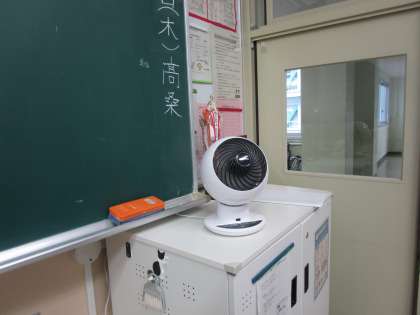 教室にはエアコンに加え、加湿器、サーキュレーターで暖房しつつ、換気、湿度をコントロールして、コロナやインフルエンザ予防に努めています。ご家庭でも引き続き県選対策をいしていただき、学校生活を送れるようご協力お願いします。