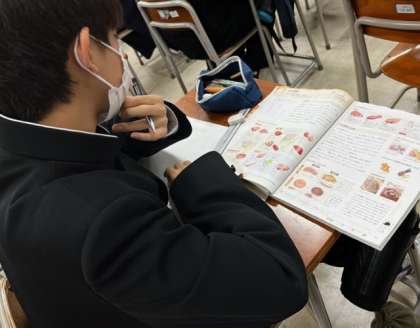 再来週の調理実習に向けて、肉の種類や危険性について、理解を深めていました。