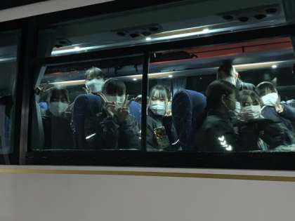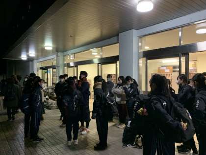 吹奏楽部は、明日さいたまスーパーアリーナで行われる第50回マーチングバンド全国大会に出場するため、学校を出発しました!