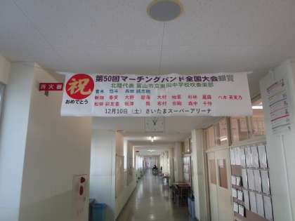吹奏楽部の皆さんお疲れ様でした 公開日 2022/12/12 更新日 2022/12/12 3学年 3年生の廊下に吹奏楽部の全国大会の写真等が横断幕で掲示されました。これまで受験勉強と両立しながら頑張ってきた部員たちへの学年主任さんのねぎらいが込められています。