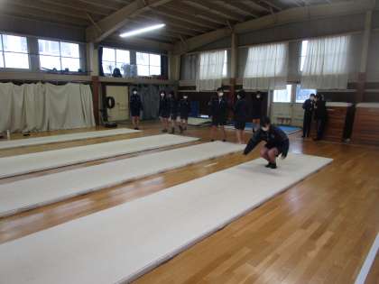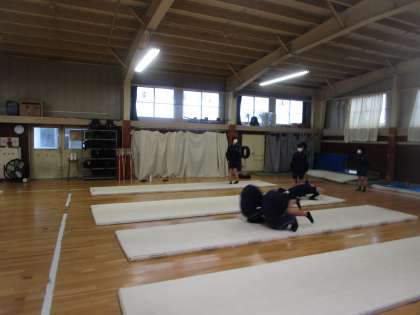 3学年女子の保健体育はマット運動の学習をしています。まとめとして自分の挑戦したい技にチャレンジしました。クロムブックで撮影したり、ネットでこつや技を調べたりして頑張っています。