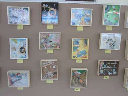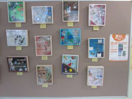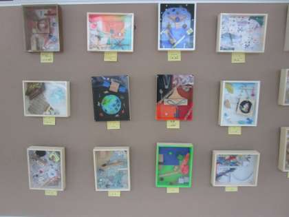 1階美術室前廊下に3年生の美術作品が30点ほど展示されています。ぜひご覧ください。