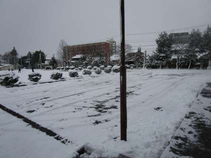 本格的な雪の日となりました。校舎周辺もすっかり雪化粧しました。生徒は天候を考え、長い長靴等で時間も考えて登校してくれました。各学年の4組の生徒が除雪をしてくれました。明日まで雪が断続的に降るようですがあと2学期、5日間元気に登校してください。