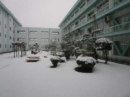生徒玄関前、武道館、中庭の様子です。すっかり雪化粧となりました。