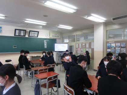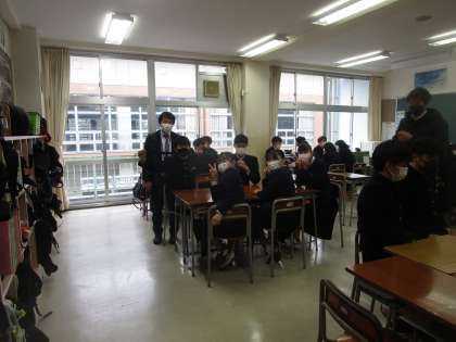 生徒会企画のBBC集会が行われました。残念ながら1年〜3年を混ぜての交流を取りやめ、各クラスで実施しました。人権作文の感想の発表の後、サイコロトークをしました。サイコロの数字ごとにお題があり、みんなにそのお題で話をするゲームでした。みんな楽しそうに2学期最後の生徒会企画を楽しんでいました。