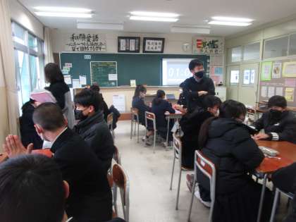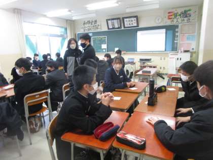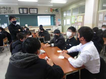 BBC集会 その2 公開日 2022/12/22 更新日 2022/12/22 生徒会 2つ目のゲームはワールドウルフというゲームでした。ワールドウルフはみんなであるお題について制限時間内に雑談をして、その雑談の中で「みんなとは違うお題」を与えられた少数派の人を見つけ出すというゲームです。画面での説明を聞いてゲームをグループで楽しんでいました。