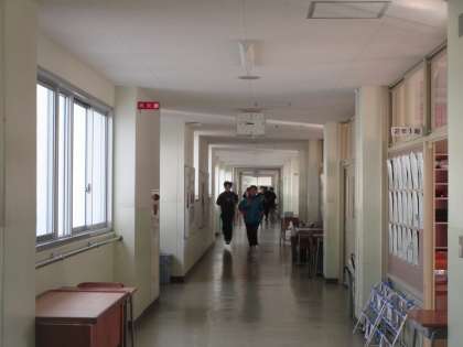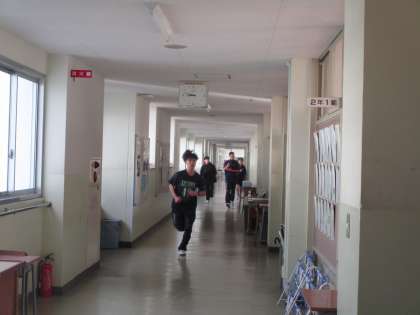 1月6日(金)午前 男女陸上競技部が廊下を走り、ストレッチをしていました。