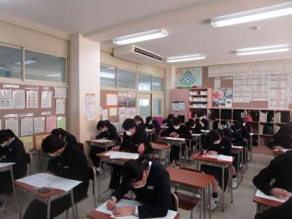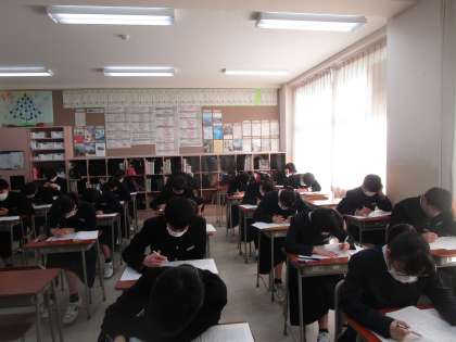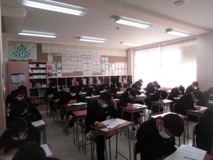 3年確認テスト2限は国語のテストでした。写真は3年6組の様子です。