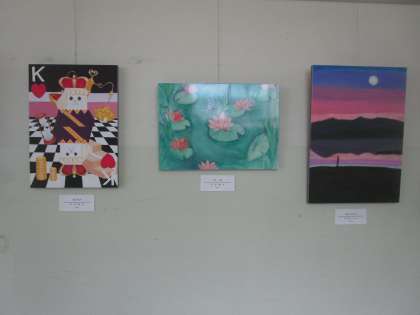 美術部が放課後や冬休みにこつこつ仕上げた作品が展示されています。