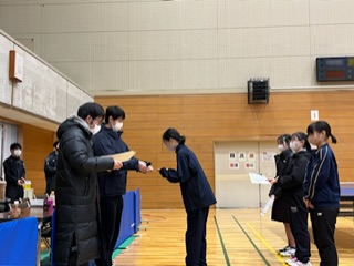 卓球部男女 富山市カデット卓球大会 公開日 2023/01/09 更新日 2023/01/09 部活動 昨日は富山市カデット卓球大会でした。 二年生男子の部では、2人がベスト16入り。 一年生男子の部でも、2人がベスト16入り。 二年生女子の部では、Tさんがベスト8。Sさんが一年生ながら先輩プレーヤーを下して3位入賞しました。 ベスト16にも2人入りました。 一年生女子の部では、Tさんがベスト8。2人がベスト16でした。 次の大会に向けて、練習に励みます。