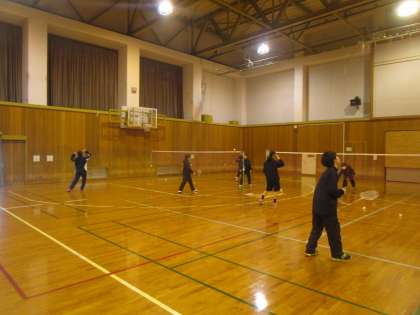 1月12日(木)放課後 男女バドミントン部が体育館で8コート使って思いきり練習していました。