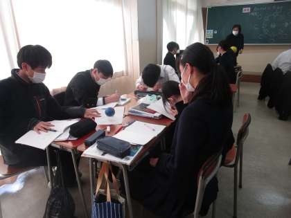 3年2組 理科 公開日 2023/01/13 更新日 2023/01/13 3学年 1月13日(金)4限 3年2組の理科は「月がどのように見えるか」という課題で学習していました。バレーボールや球体を使って見え方を確認していました。