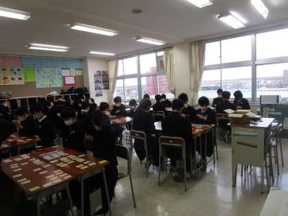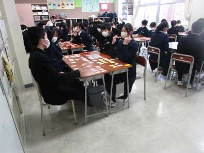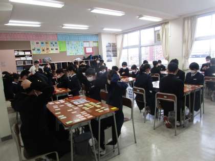 1月16日(月)3限 国語の時間に百人一首の学習をしていました。古典に楽しみながら親しんでいました。