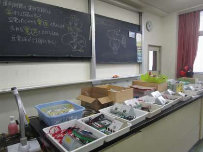 2年4組 理科 公開日 2023/01/16 更新日 2023/01/16 2学年 2年4組の理科は、理科室で「直列回路と並列回路の実験をして確認していました。実験後、ワークシートに結果や考察をまとめていました。
