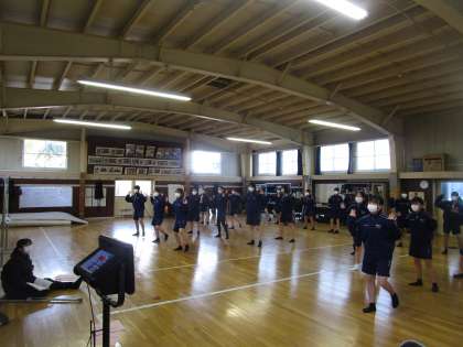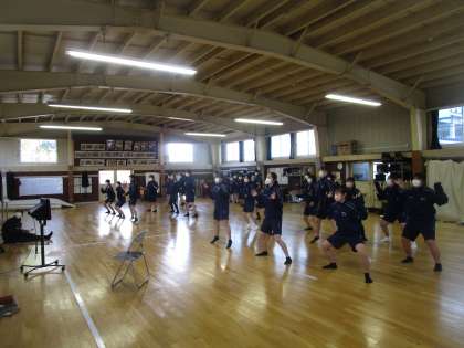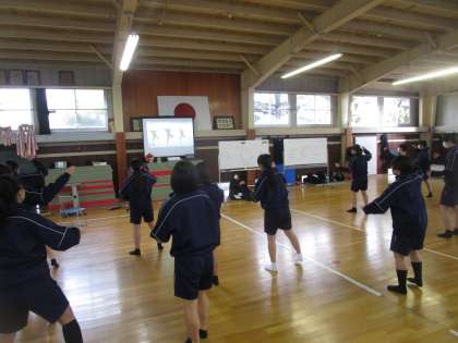 2年女子保健体育 公開日 2023/01/17 更新日 2023/01/17 2学年 2年生女子の保健体育は、富山ダンスコンテストの課題曲「IYASAKA」のダンスにチャレンジしています。解説動画やスロー再生などで動きをマスターしてみんなで楽しく踊ることを目標に頑張っています。