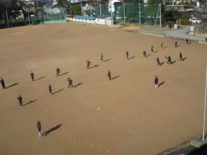 1年3組保健体育 公開日 2023/01/19 更新日 2023/01/19 1学年 1月19日(木)3限 1年3組の保健体育は、グラウンドでソフトボールをしていました。2学期の続きで1月ですが快晴の中、ゲームをして楽しんでいました。