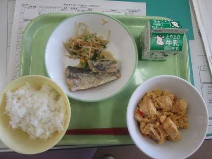 1月19日(木) 本日の給食は、ごはん、厚揚げの卵とじ、鰆の西京焼き、コーン和え、牛乳でした。