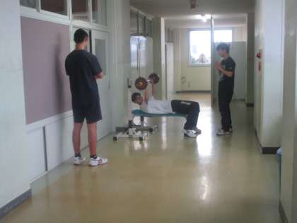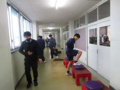 放課後の部活動 男子陸上競技部 公開日 2023/01/19 更新日 2023/01/19 部活動 1月19日(木) 男子陸上競技部がバーベル、ロードロープなどを使って総合的に体を鍛えていました。冬場ならではの練習です。