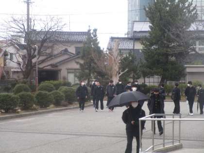 1月23日(月) 8時05分前後が登校のピークです。たくさんの生徒が登校しています。