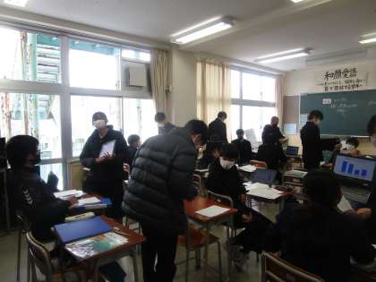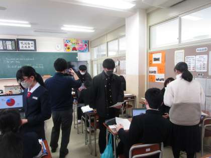 2年2組 英語 公開日 2023/01/25 更新日 2023/01/25 2学年 2年2組の英語は、友達にインタービューしたことをクロムブックでグラフにしてその結果と考察をクロムブックを見せながら紹介していました。