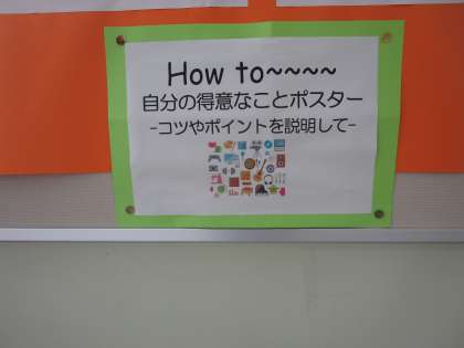 2学年 英語 公開日 2023/01/26 更新日 2023/01/26 2学年 2学年の英語でhow to を使った用法を使って、自分の得意なことをポスター〜こつやポイントを説明して〜が廊下の学年黒板に掲示されていました。