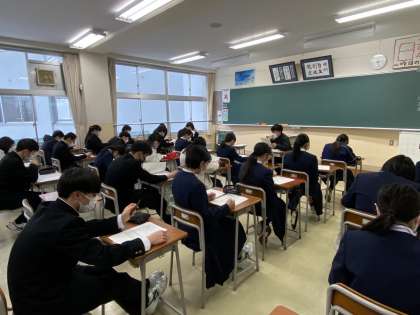 私立一般入試 事前打ち合わせ 公開日 2023/01/27 更新日 2023/01/27 3学年 来週の私立一般入試に向けて打ち合わせを行いました。天候が心配ですが、無事に当日を迎えられるよう祈っています。 1/30(月)に連絡票を提出することになっています。忘れずに提出しましょう。