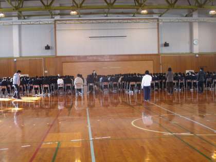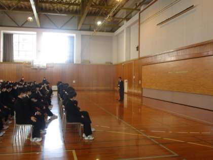 3年私立一般入試激励会を行いました 公開日 2023/02/01 更新日 2023/02/01 3学年 2月1日(水)6限 先週27日(金)に私立高校一般入試の事前打ち合わせを行いました。今日は明日の私立入試に向けて校長先生から激励の言葉、進路指導主事の先生から最終の諸注意等が話されました。教室に戻って担任の先生と最終確認をしました。 それぞれ明日の私立一般入試、体調を整えて自分の力を出し切ってください。