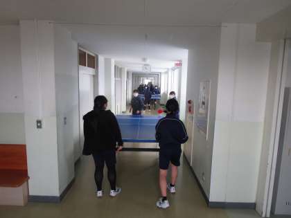 3年3、4組女子保健体育 卓球 公開日 2023/02/04 更新日 2023/02/04 3学年 3年3組、4組女子の保健体育は武道館を剣道で使用していたため、4階廊下で卓球をしました。私立一般入試まで女子は万一を考えて保健の授業をしていました。久しぶりの運動は昨日の私立一般入試の疲れを癒やすのには最高だったようです。この仲間とも一緒に活動するのももうしばらく思う存分卓球を堪能していました。