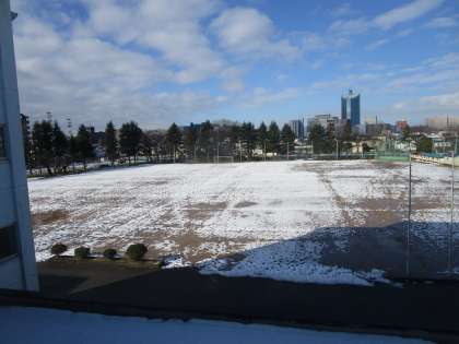 昨日から今朝の朝までの雨とその後の陽ざしでグラウンドが少し見えてきました。昨日の部活動で使った足跡がグラウンドにはいっぱいです。しばらく寒さや雪も一休みのようです。気候に合わせて健康、健全、安心、安全で過ごしましょう。