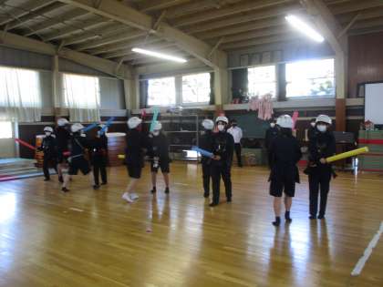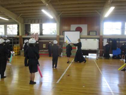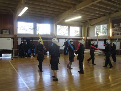 1年1組保健体育 剣道 公開日 2023/02/06 更新日 2023/02/06 1学年 2月6日(月)3限 1年1組の剣道は、対人での面、小手、胴の練習をしていました。打つ人と受ける人を交替しながら楽しんでいました。