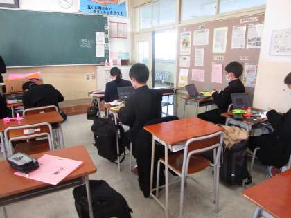 広報委員会がクロムブックも使って掲示物を作成していました