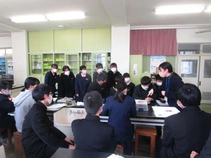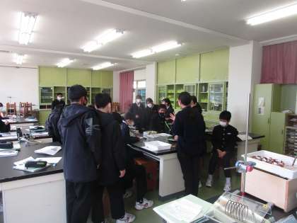2年6組の理科は、理科室で磁界の学習をしていました。コイルを使った実験について先生から説明があり、実験の仕方や諸注意をしっかり聞いていました。