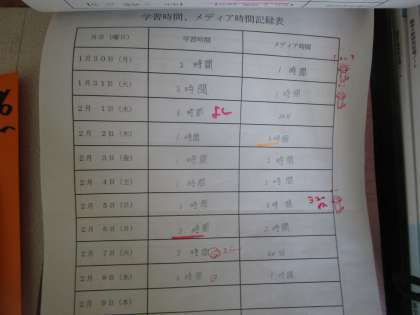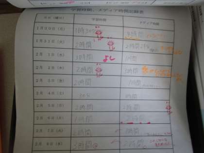 第2回学習時間を増やし、メディア機器利用時間を減らす 公開日 2023/02/09 更新日 2023/02/09 2学年 第2回学習時間を増やし、メディア機器利用時間を減らすのプリントです。毎日のそれぞれの時間が記入され、先生のコメントやスタンプなどが押されています。