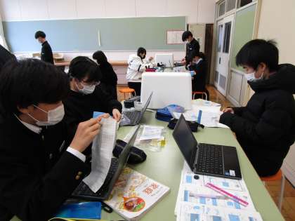 学年末考査に向けて授業に真剣に取り組んでいます。家庭科の製作もあと少しで完成です。