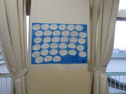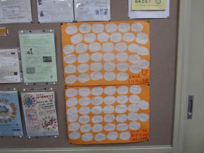 1年2組 いいひと いいところ 公開日 2023/02/13 更新日 2023/02/13 1学年 1年2組の教室内に「いいひと いいところ」の掲示がされていました。目指す生徒像の「互いのよさを認め 支え合う生徒」につながる掲示です。